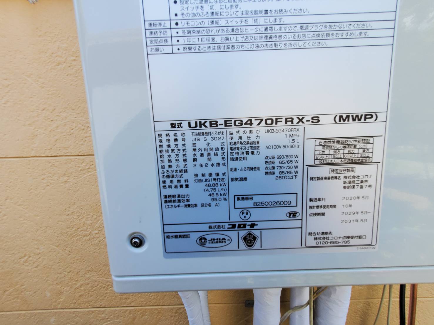 松本市石油給湯機付ふろがまUKB-EG470FRX-S(MWP)