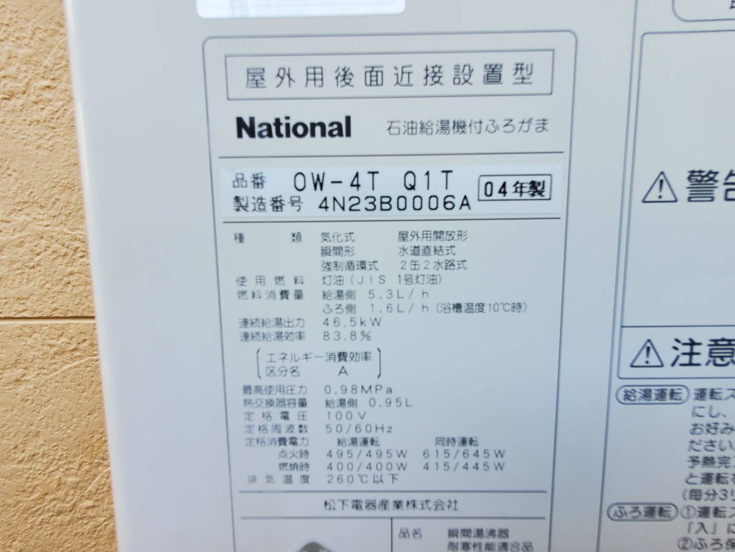 松本市石油給湯機付ふろがまOW-4TQ1T →石油給湯機付ふろがまUKB-EG470FRX-S(MWP)